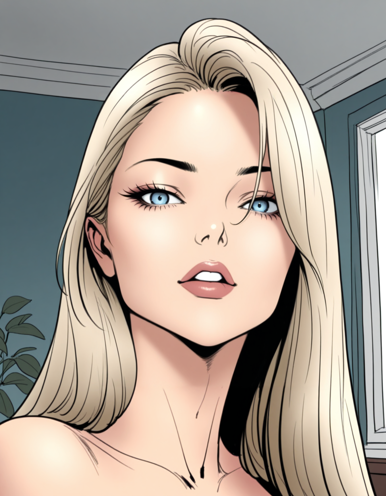 br00k3, 금발, 긴 머리, 파란 눈, 속눈썹