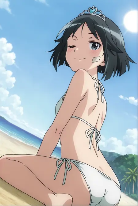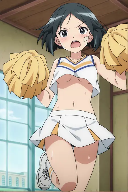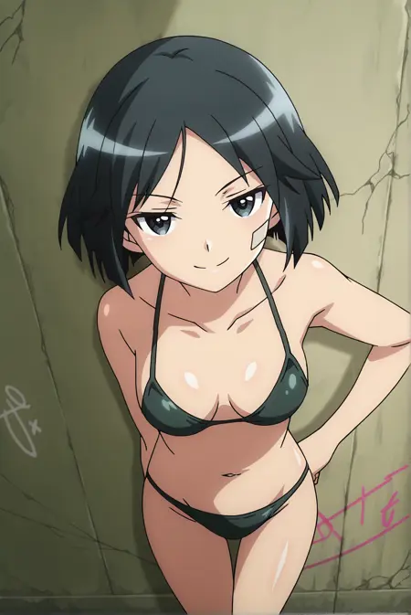 Basic: naoe, 1girl, black eyes, black hair, short hair, bandaid