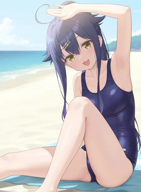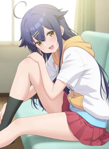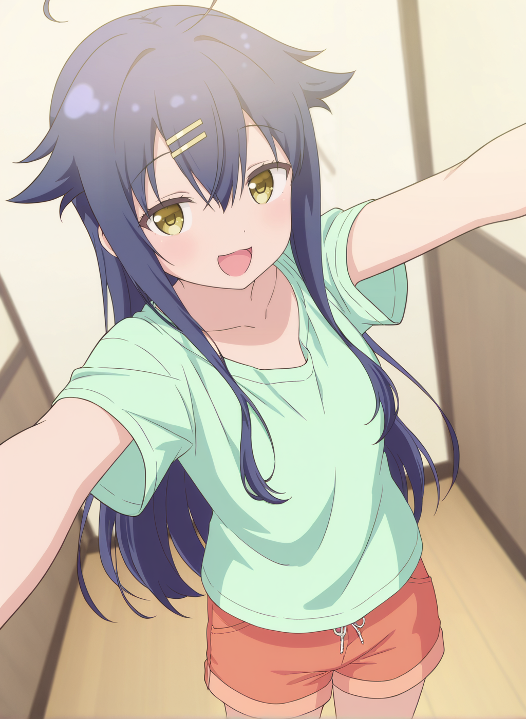 natsukawa kuina, hinako note, 蓝发, 长发, 发夹, 天线发, 发帘, 黄眼睛, 头发遮住眼睛