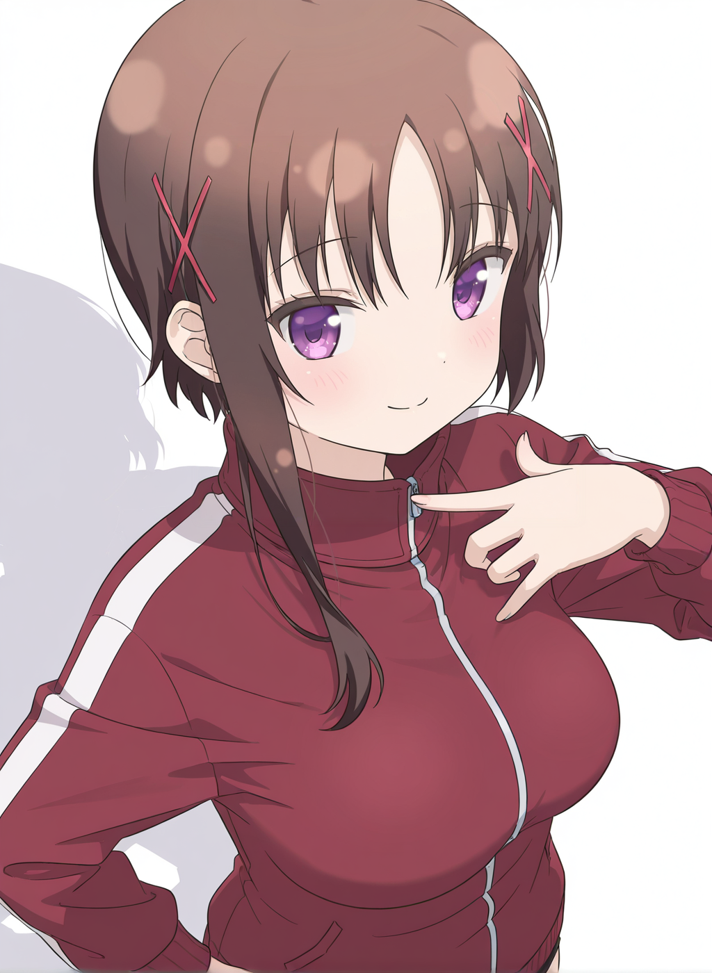 hagino chiaki, hinako note, 棕髪, 長い前髪と短い髪, 紫色の目, 横髪, 非対称な髪型, 中程度の胸, x ヘアオーナメント, ヘアクリップ