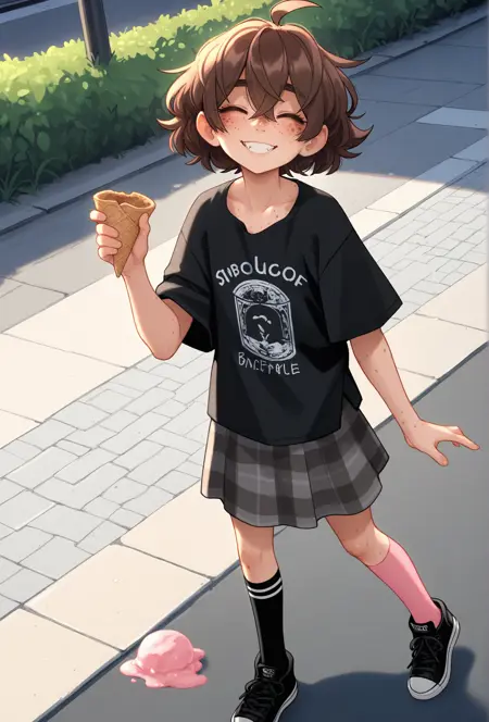 neck ribbon, white shirt, collared shirt, pleated skirt, plaid skirt, knee socks