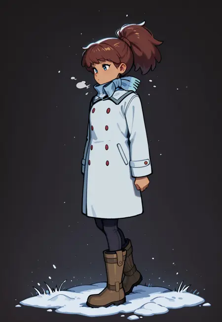 프리ernen의 겨울 복장: fr3 winter coat, fr3 blue scarf,