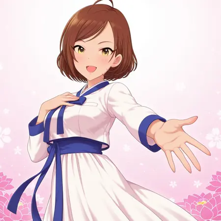 PROMPT: (Face) - 1girl, im yujin, brown hair, short hair, ahoge, yellow eyes, long eyelashes, idolmaster cinderella girls, medium breasts,