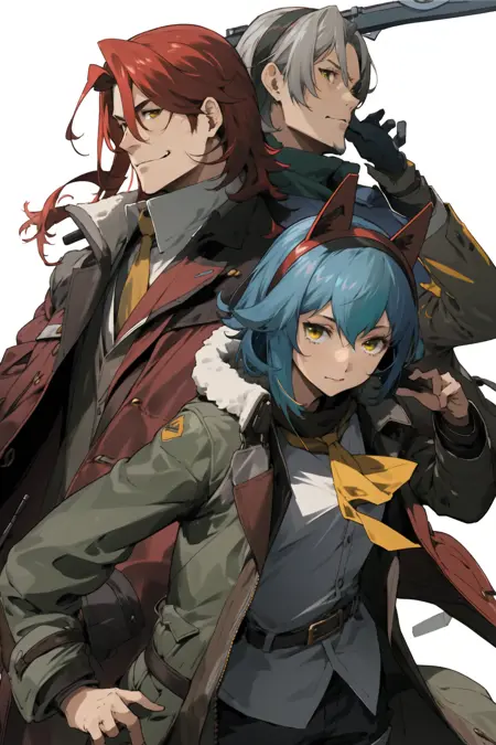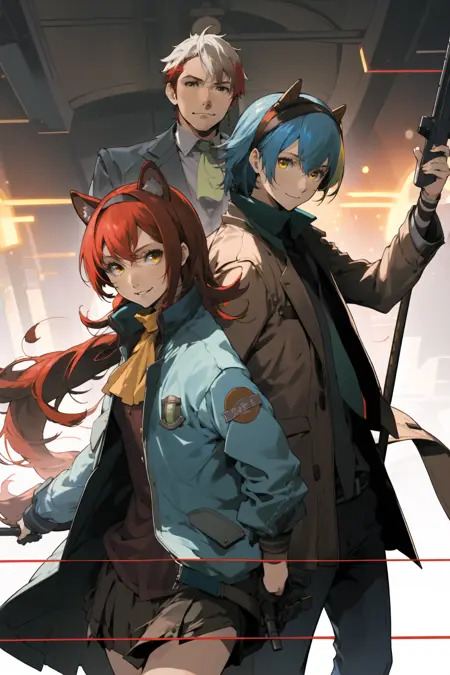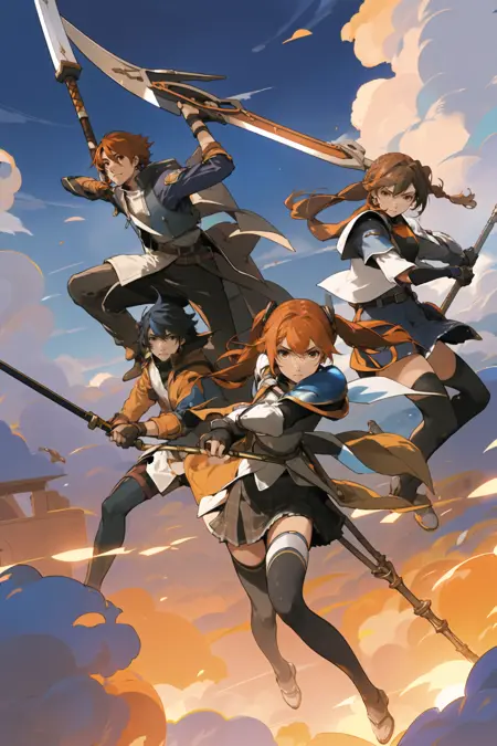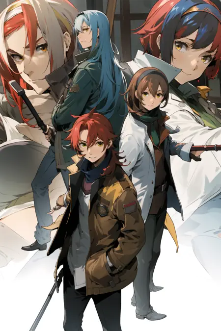 注:推荐配合擅长动态构图的模型(比如Blazing Drive系列);用**"multiple boys" "multiple girls"**出人堆图效果意外地好,但V1脸部特写不够像Enami风格(V2增强脸部训练后略有改进)