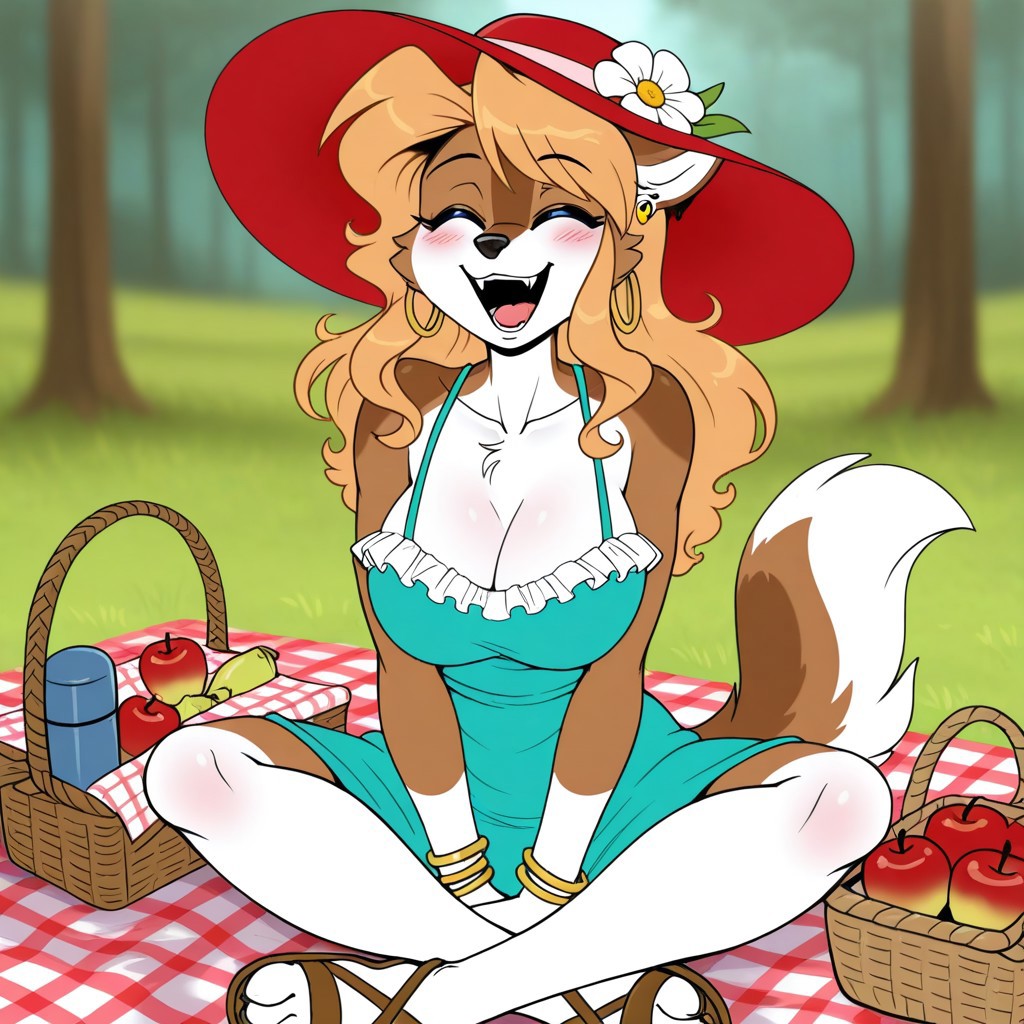 3liza_uq, 1girl, solo, furry, furry female, animal ears, breasts, blue eyes, large breasts, brown hair, snout, tail, animal nose, blonde hair,