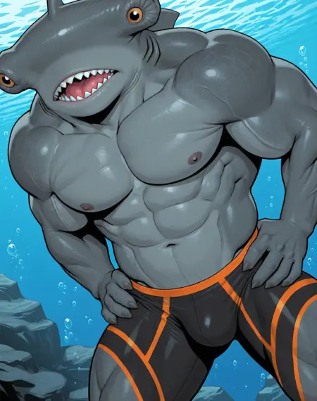 これはDCコミックスのキャラクター「キングシャーク」のIllustriousスタイル用LoRAです。特にコミックスに登場するハンマーヘッドシャーク版を対象としています。