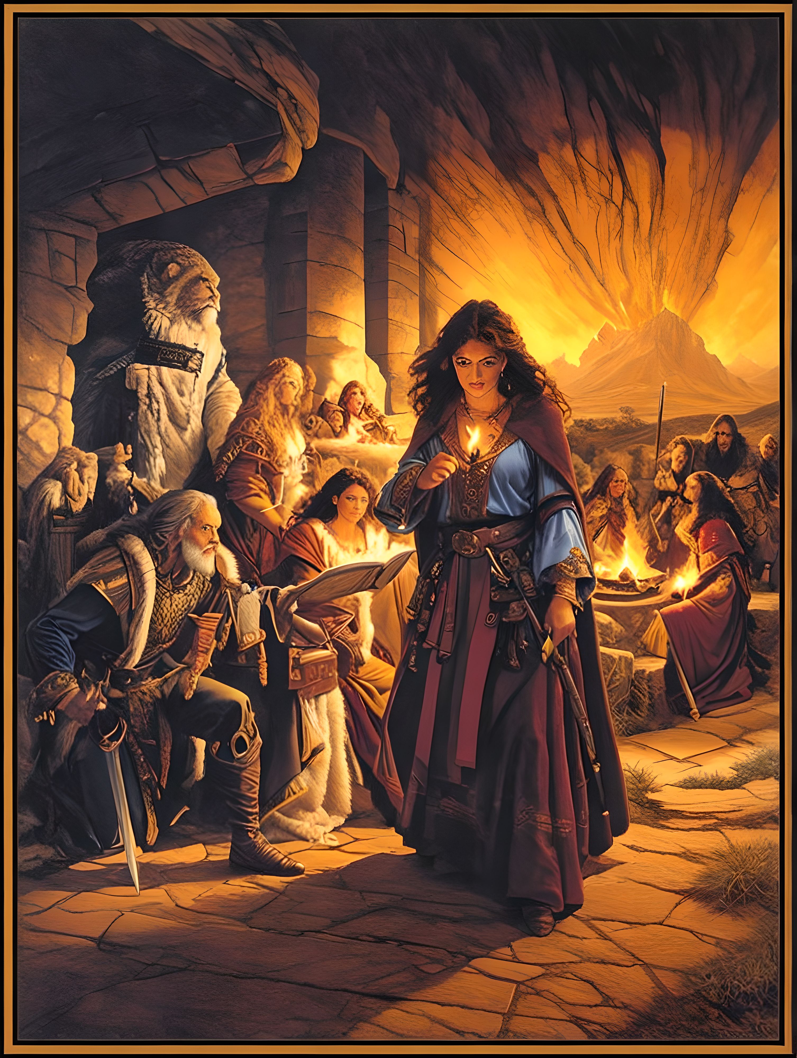 Nostalgic fantasy ambiance reminiscent of 1980s TSR covers, imbued with an epic, adventurous quality.