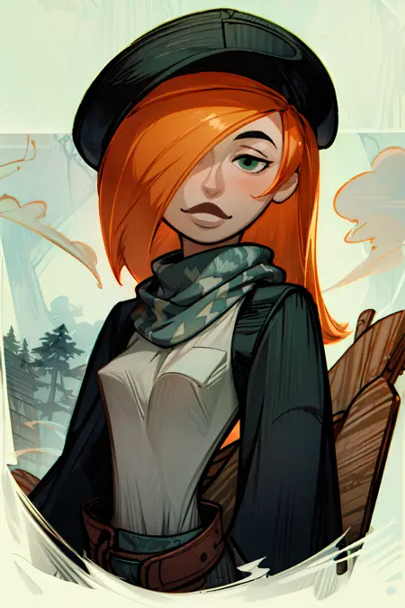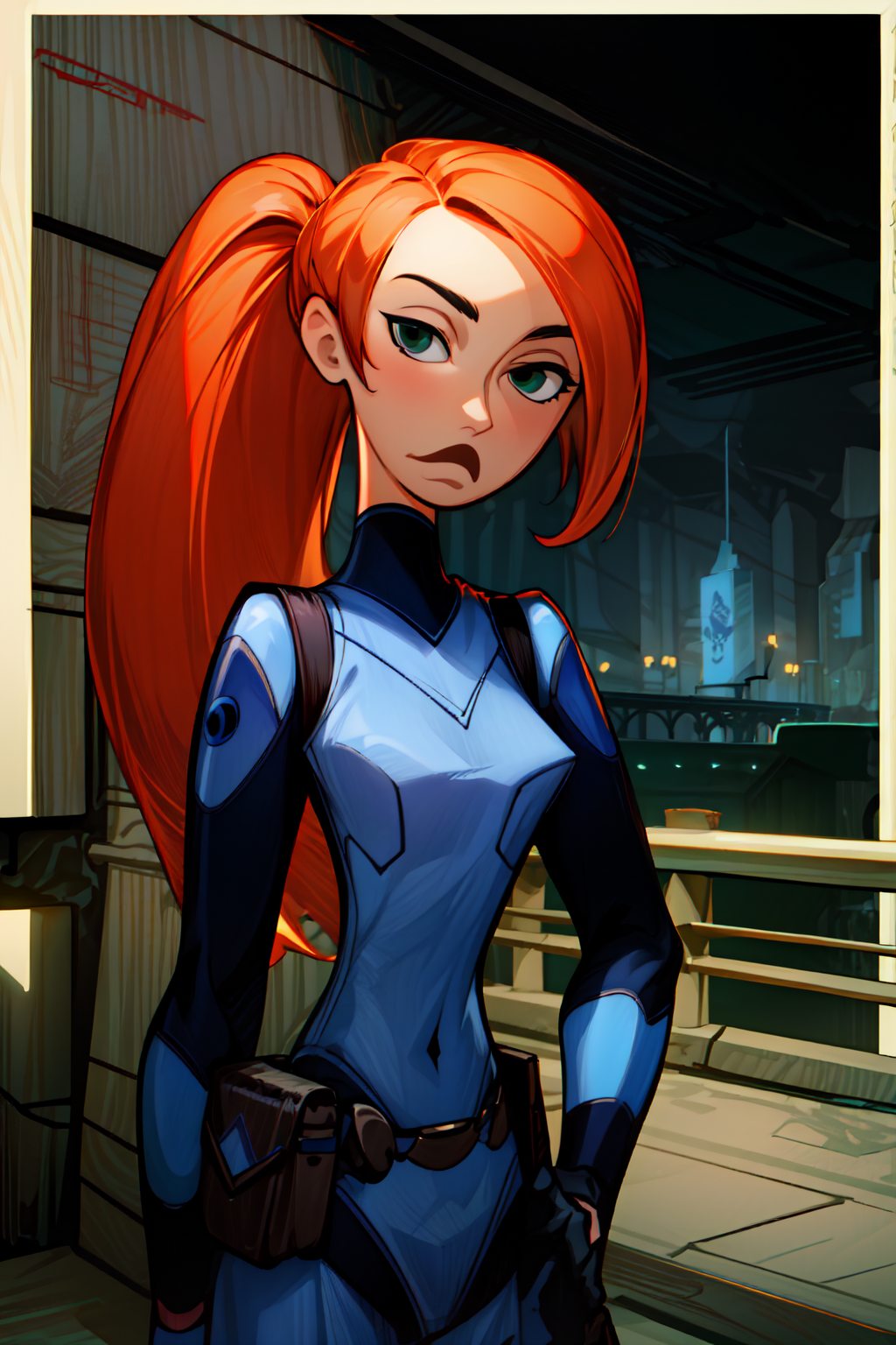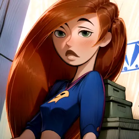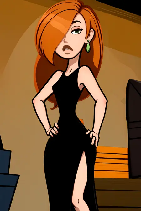 긴 주황색 머리카락, 미소, 배꼽, 허리