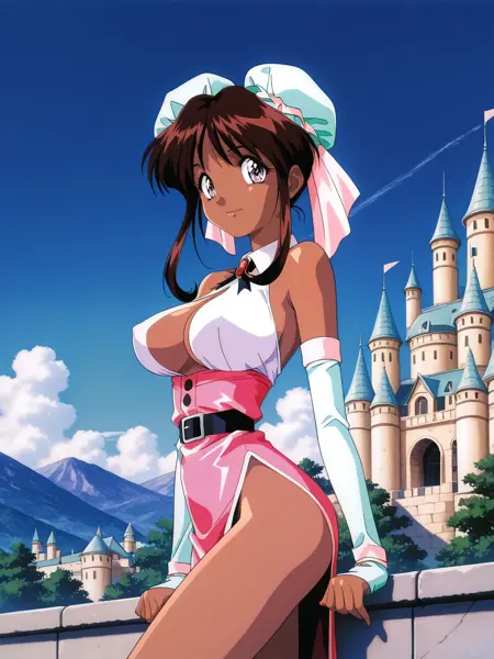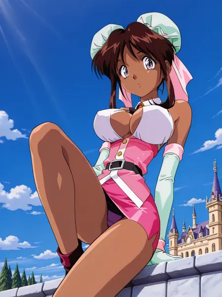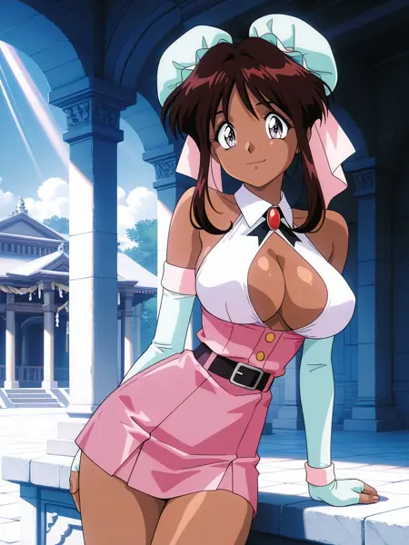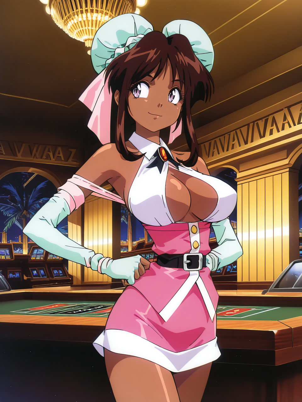 衣装: 胸元の露出, 胸元のカットアウト, 手袋, 肩の露出, ピンクのドレス, 短いスカート, 肘までの手袋