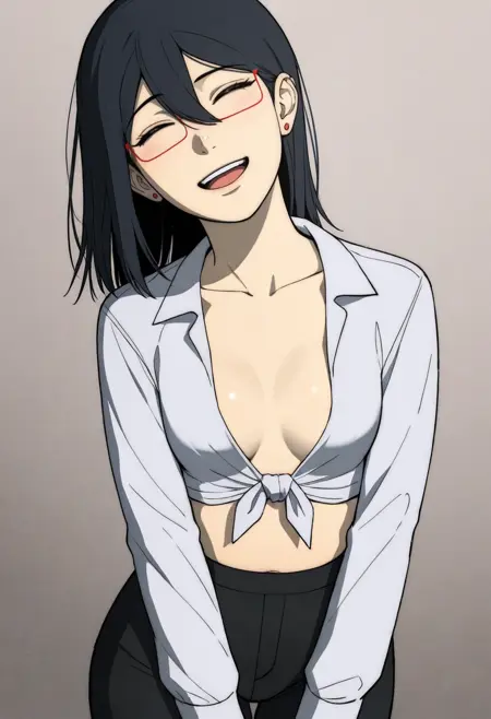 옷차림: 앞머리, 파란 눈, 검은 머리, 눈 사이의 머리, 흰 셔츠, 넥타이, 안경, 칼라 셔츠, 반프레임 안경, 빨간 배경, 빨간 프레임 안경, 파란 넥타이, 재킷, 검은 재킷, 정장, 긴 소매