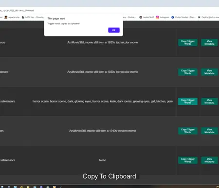 요약하자면, 매번 실행할 때 이전에는 Civitai와 왔다 갔다 했지만, 이제는 JSON 파일에서 읽어옵니다. 처음 실행은 조금 오래 걸리지만, 그 후에는 새로 추가된 LoRA만 찾습니다. LoRA를 스캔할 때 이미 목록에 있는 항목을 만나면 'SKIPPING' 메시지가 표시됩니다. HTML 출력 파일에는 이제 검색 기능이 추가되어 AI를 사용할 때 훨씬 편리해졌으며, 각 LoRA의 Trigger를 복사할 수 있는 버튼도 있습니다. AI를 실험할 때 새 탭에 열어두면 원하는 NSFW LoRA Trigger에 빠르게 접근할 수 있습니다 ;-)
