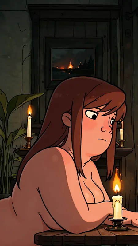 1girl, brown hair, long hair, , black eyes, large breasts,fat:0.9