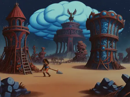 艺术风格LoRA,专为重现勒内·拉卢克斯1973年迷幻动画科幻电影**《奇幻星球 / La Planète sauvage》**的手绘美学、色彩与风格而打造。它呈现出优美的手绘或绘画风格,带有复古色彩、独特装饰性形状与结构,尤其擅长生成迷幻植物、科幻外星景观、超现实主义、闪烁的水晶、DMT机械、物体、人类、生物以及红眼蓝色外星人。在正负提示中加入这些元素时,常会诞生有趣的效果。
