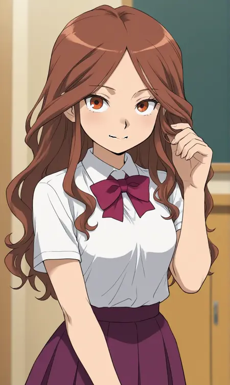 natsumi raimon, school uniform, white shirt, purple skirt, long hair