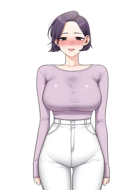 | トレーニングワード | yoo_sodam, short hair, purple hair, hair behind ear, black eyes, pink lips, large breasts,コピーしました! outfit1, purple shirt, long sleeves, sleeves past wrists, collarbone, tight shirt, white pants, high-waist pants,コピーしました! outfit2, cleavage, red dress, red sweater, bra strap, collarbone, sweater dress, off-shoulder dress, black bra, long sleeves,コピーしました! outfit3, cleavage, scoop neck, white shirt, collarbone, long sleeves, high-waist pants, jeans, blue pants, shirt tucked in, tight clothes,コピーしました! |