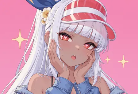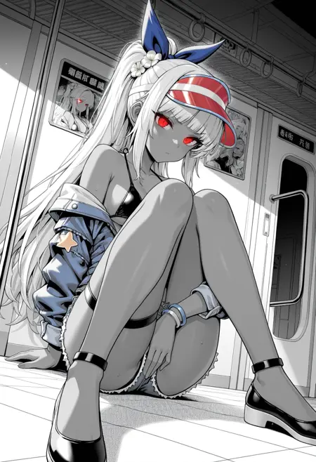 태그: xiapila, blunt bangs, dark-skinned female, long hair, ponytail, red eyes, white hair,
