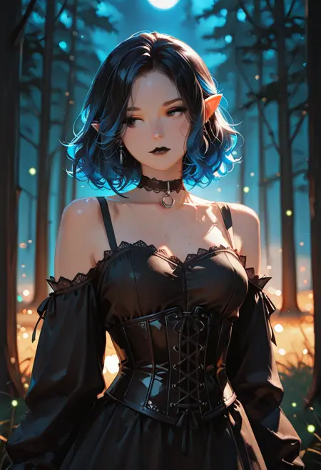 这是我基于我的角色Emelisse制作的第一个LoRA。她的形象本意是呈现一种“哥特风”Elezen,但我感觉训练过程中 somehow 失去了黑色口红的特征。