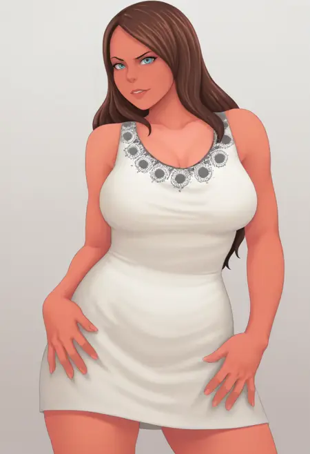 为获得更游戏真实的外观,请添加:crop top, tank top, miniskirt, pencil skirt