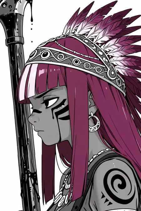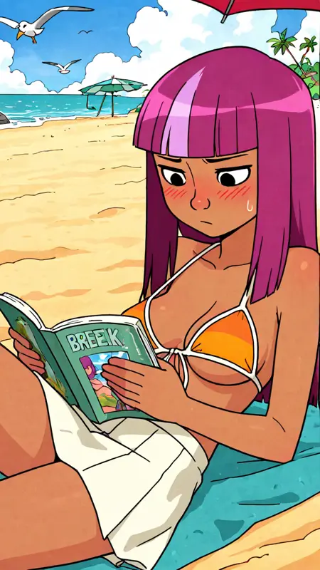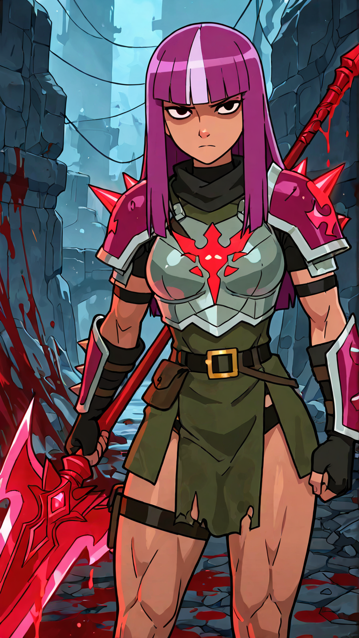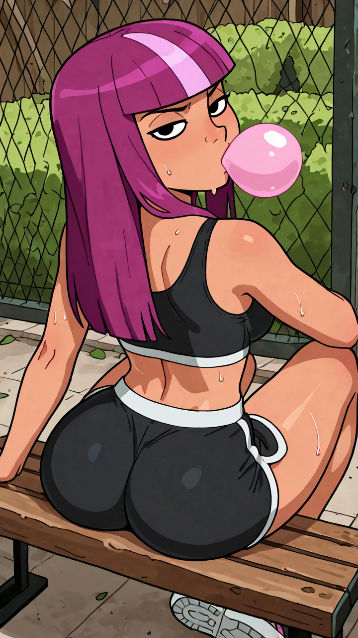 1girl,彩色头发,齐刘海,黑色眼睛,长发,紫色头发,深色皮肤