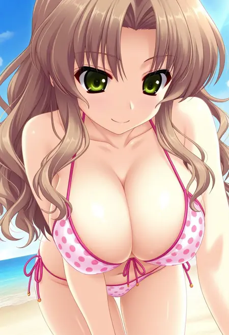 Recommend Prompt:Riisa Tatsumi, green eyes, green eyes, brown hair, long hair, loose wavy hair, parted bangs,