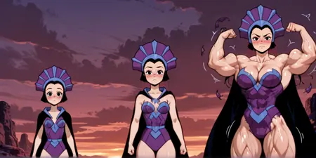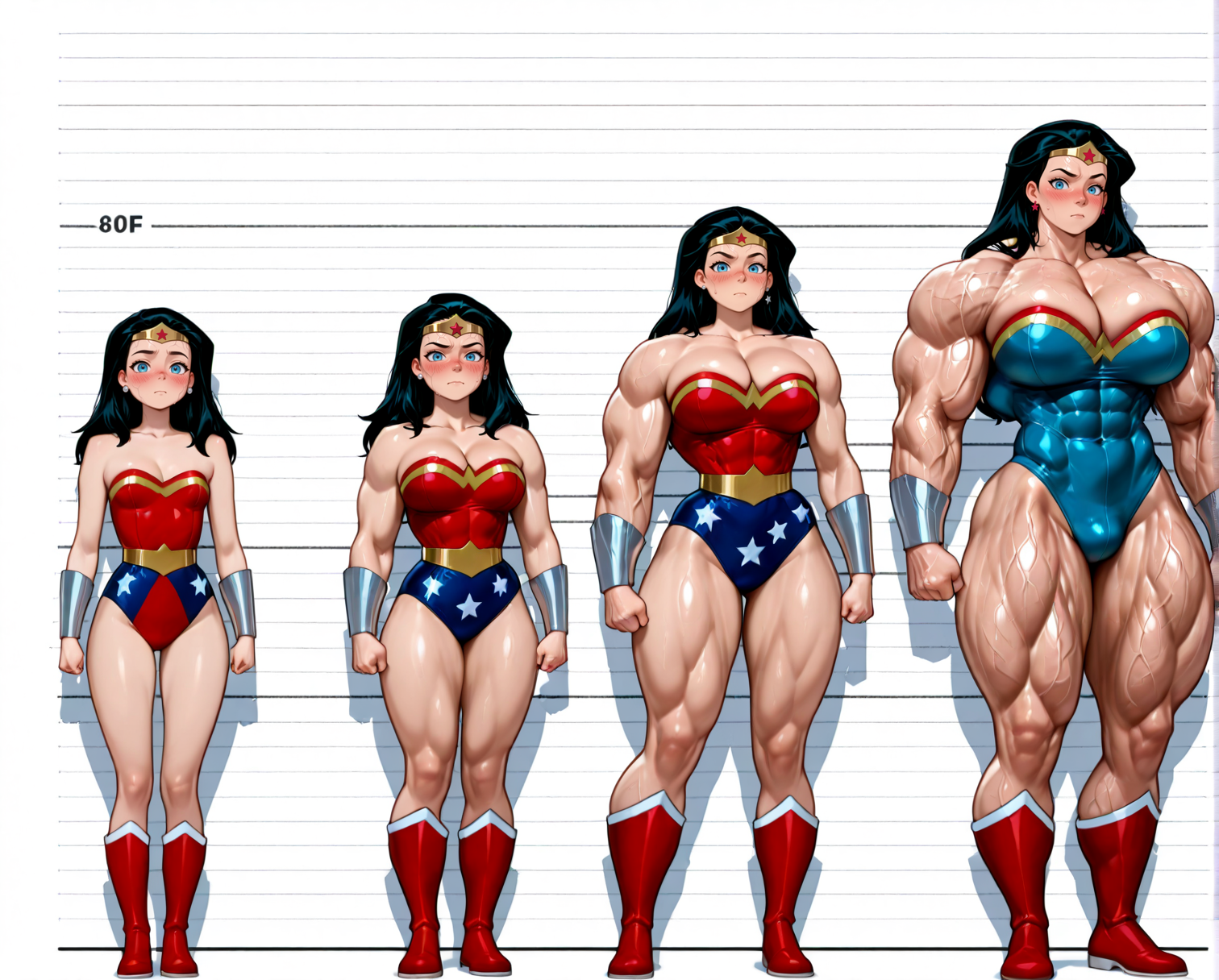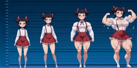 被写体の物理的変化を線形の並びで確認できる「筋肉変形・成長」コンセプトです。最大6段階の変化を生成できます。