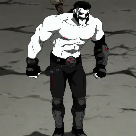 Lob0, Black Hair, Facial Hair, Red Eyes, Colored Sclera, Beard, Muscular, Muscular Male, Abs, Pectorals, Nipples