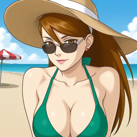 『捜査』シリーズのスプライトの性質上、出力は彼女の体が横方向に傾く傾向があります。正面を向かせたい場合、プロンプトに straight-on を使用すると良いです。