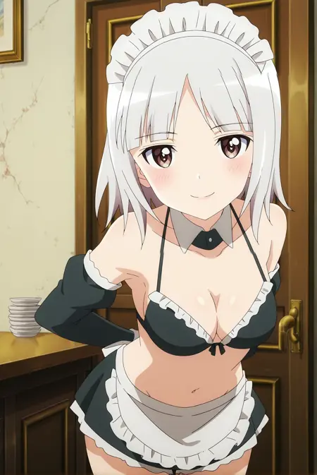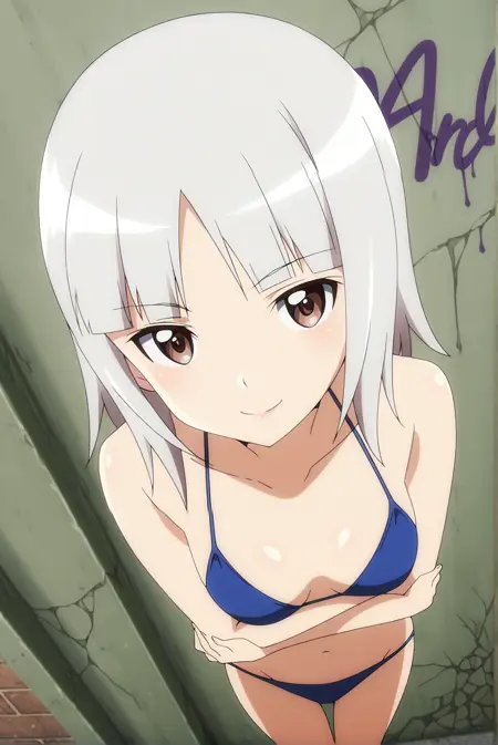 Basic: edytha, 1girl, brown eyes, silver hair, medium hair