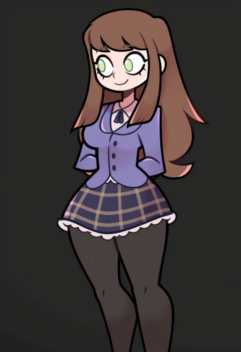 服装:短裙,衬衫,校服,站立,夹克,连裤袜,侧目,格子图案,黑色连裤袜,颈巾,格子短裙,双手背在身后,