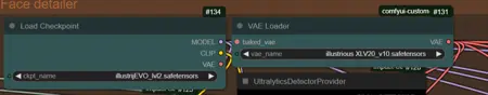 我为面部细节增强器添加了不同的模型和 VAE 加载器,你可以选择使用相同的模型和内置 VAE,也可以根据自己的喜好更换。