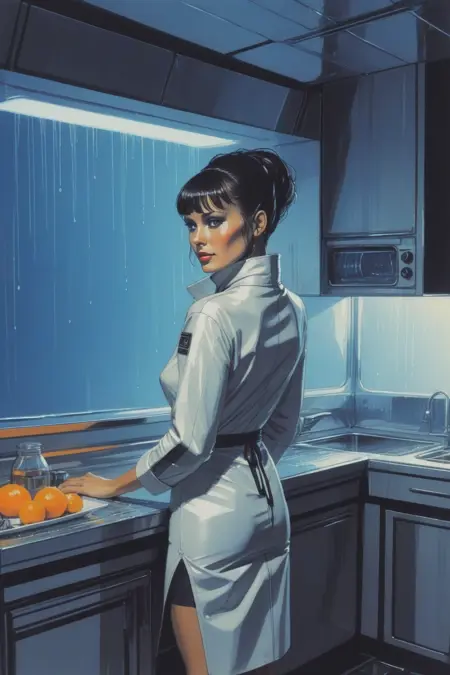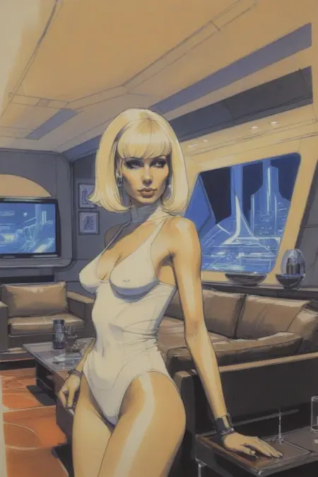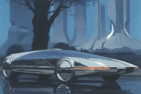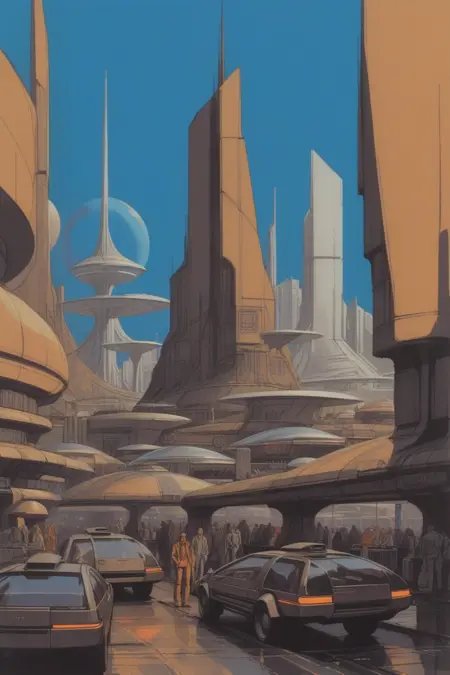 触发词为:concept art by syd mead, retro futuristic