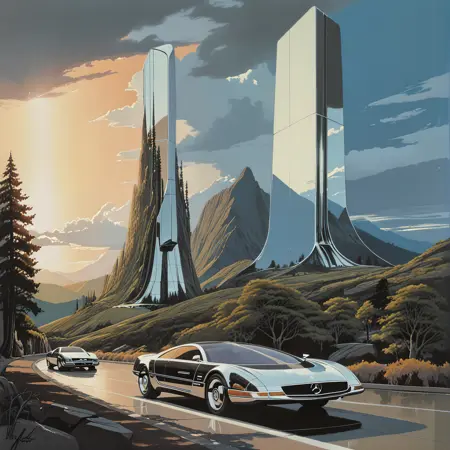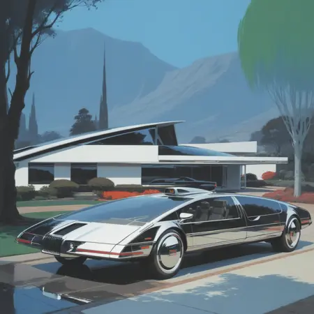 トリガー単語は:concept art by syd mead, retro futuristic