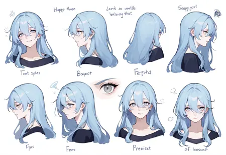 **默认外观:**1girl,灰眼睛,长发,白眼,蓝发,蓝眼睛,极长发,发丝遮眼,刘海