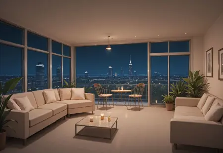 Other trigger that helpful to set the scene: indoors, outdoors, pool, city, cityscape, building, lounge chair, table, chair, couch, plant, tree, vase, flower,