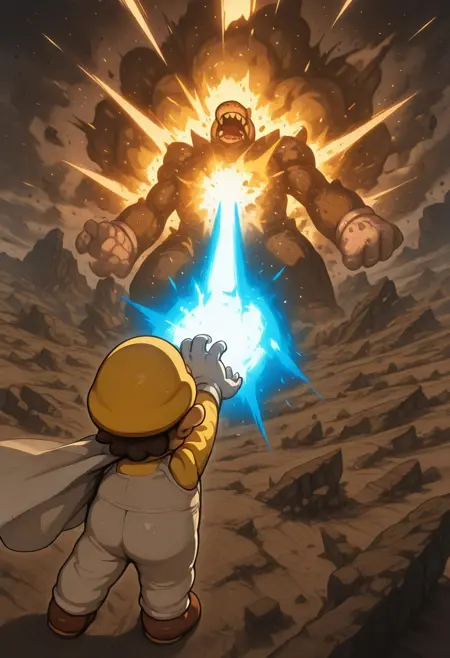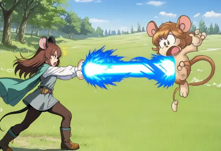 1个男孩/女孩在指定位置,1个男孩/女孩从手中发射能量束,