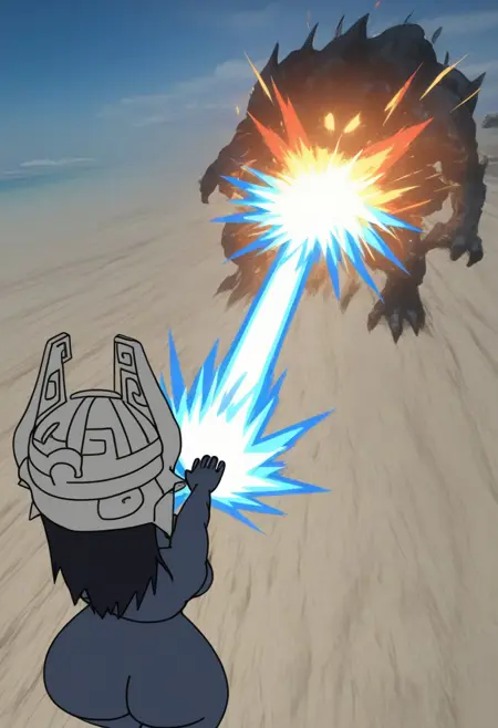 蓝色能量束冲击,能量束从手中射出,束击溅射,朝向_目标_的长束,朝向目标位置的长束,束击中目标位置,束击溅射,