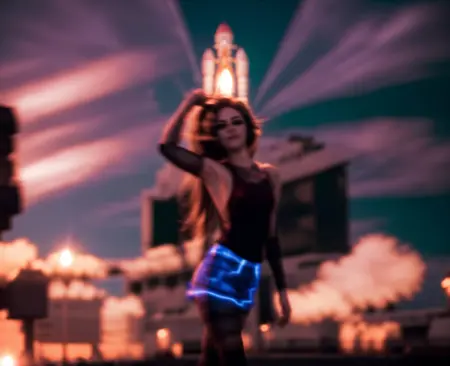 以下のトークンを記述することをお勧めします:motion blur、blurry、low shatterspeed、defocus、slate gray、epic lighting、flares、highlights。
