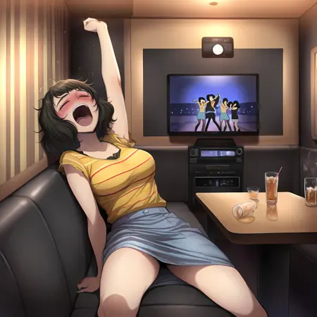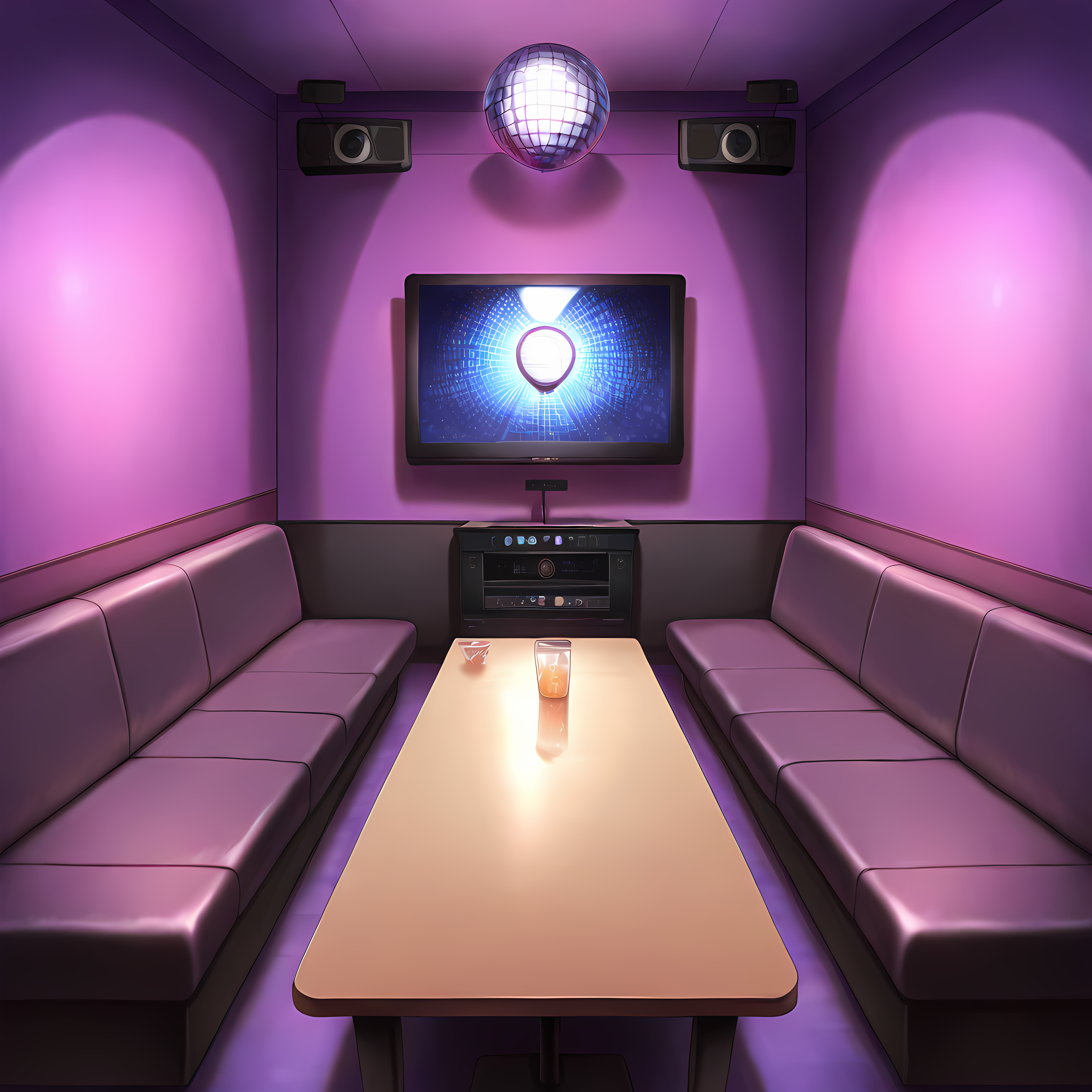 附加词:卡拉OK、室内、桌子、电视、沙发