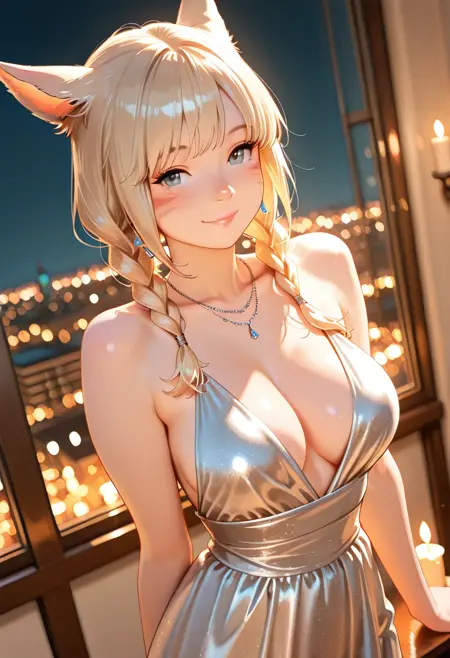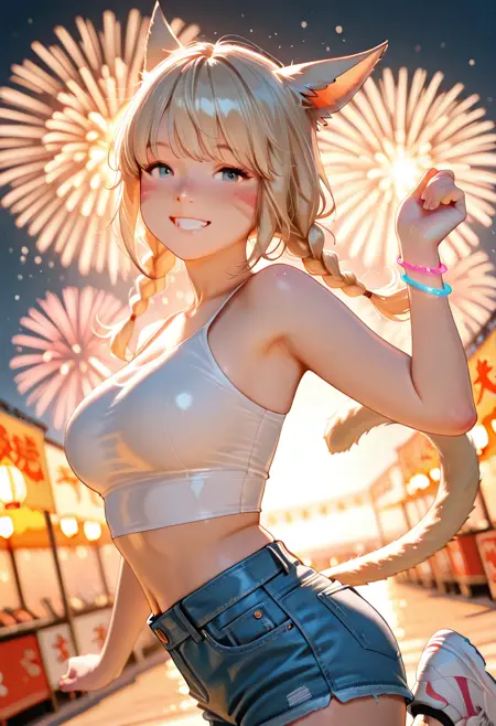 训练中使用的大多数图像为肖像或上半身,且无任何服饰,因此默认输出很可能是裸体的猫娘。必须使用 miqo'te 标签,否则无法呈现其特征。我不太确定我在哪里出错了。