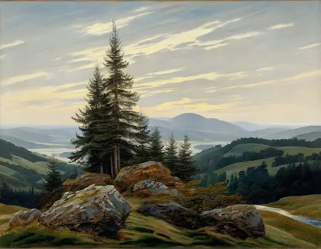これはドイツの画家、カスパール・ダビッド・フリードリヒのスタイルに特化したLoRAです。彼はロマン主義運動の中心的な人物であり、情感豊かな風景画で特に知られています。