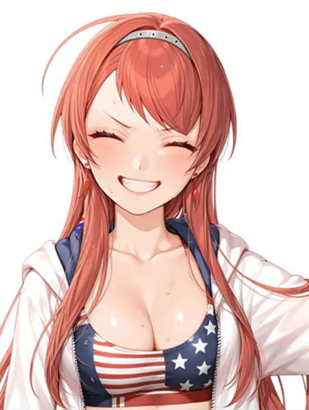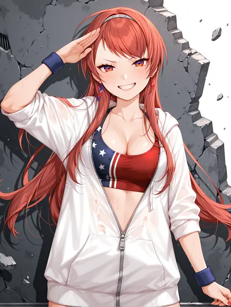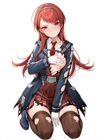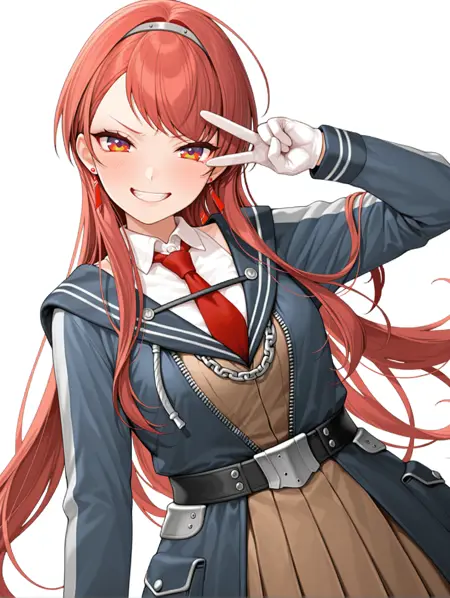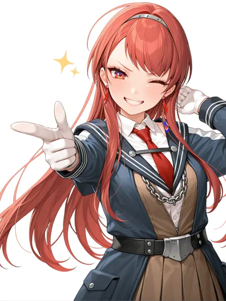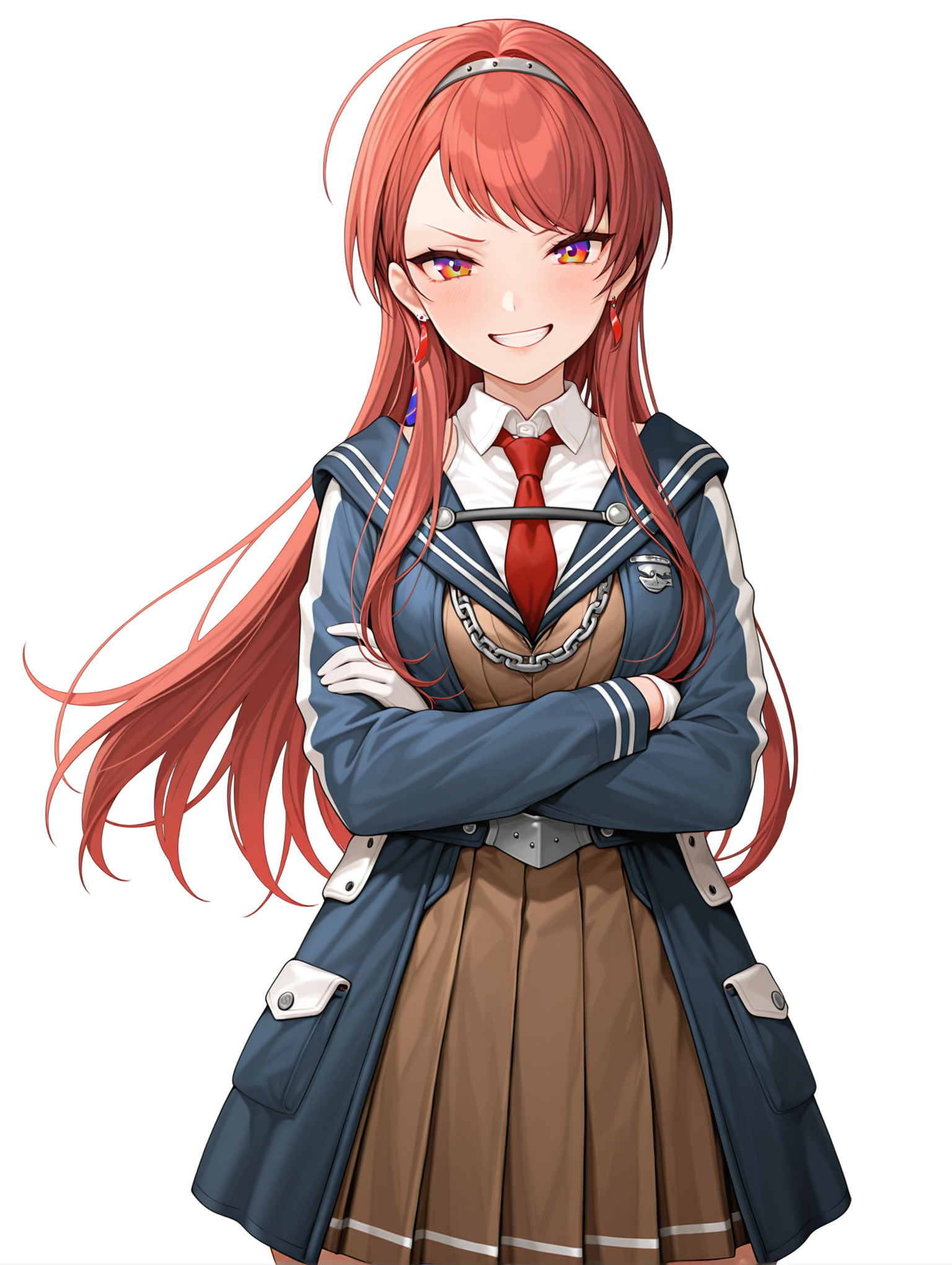 トリガーワード ・b_b_nevada_kai_mod_2,hairband,earrings,red hair,long hair,multicolored eyes,
