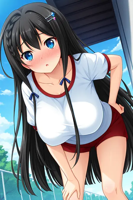 gym uniform,gym shirt,t-shirt,white shirt,red shorts,gym shorts,short shorts,