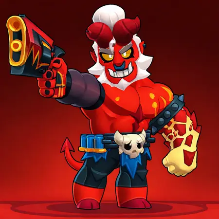 その他のプロンプト: チェーンベルト、ズボン、武器、武器を握っている、銃、デーモンの尾、足の蹄、トゲ、
