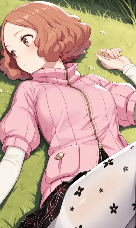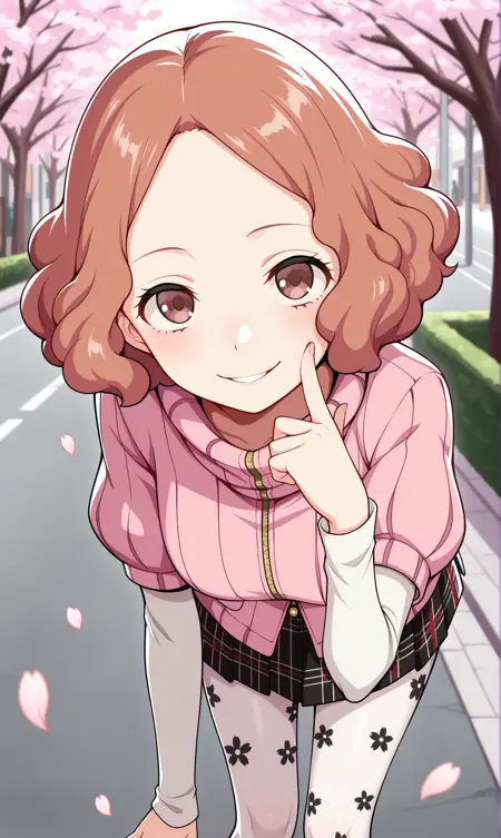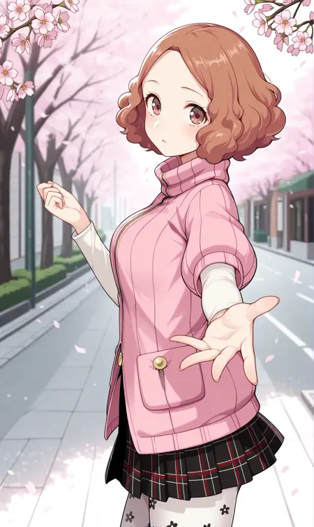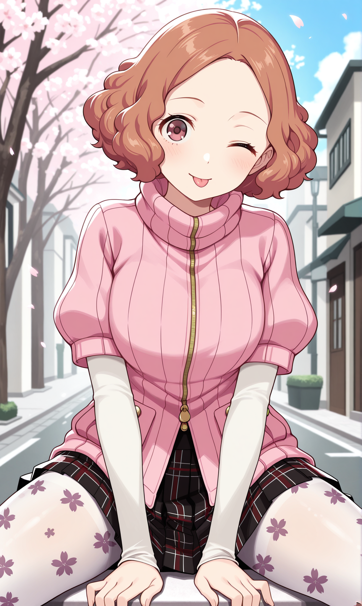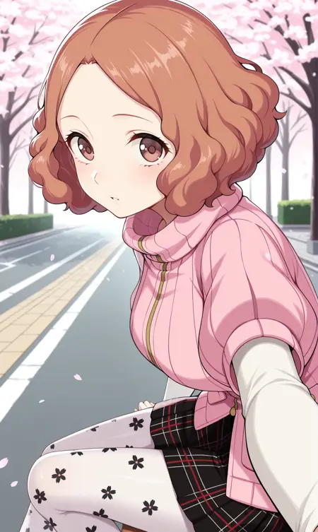 계층적인 소매, shuujin 아카데미 교복, 터틀넥, 분홍색 스웨터, 검은 치마, 미니 스커트, 리브 스웨터, 플로럴 프린트, 흰색 팬티스타킹, 짧은 소매가 긴 소매 위, 프린트 팬티스타킹, 터틀넥 스웨터, 긴 소매, 체크 스커트