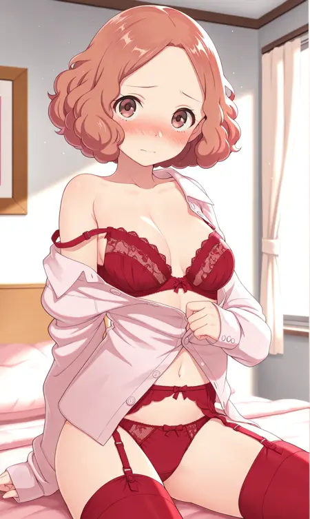 okumura haru, 곱슬머리, 갈색 눈, 단발