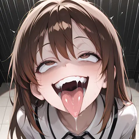 双眼半闭,微张嘴唇,流口水,波浪状嘴巴,Ahegao,