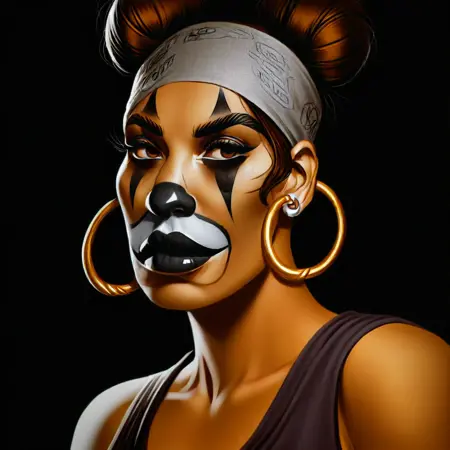 💄 ガングスターアイコン – バンダナ、フープイヤリング、タンクトップ、チェックシャツ、バニーテールまたはルーズヘア