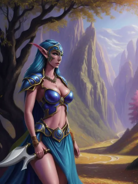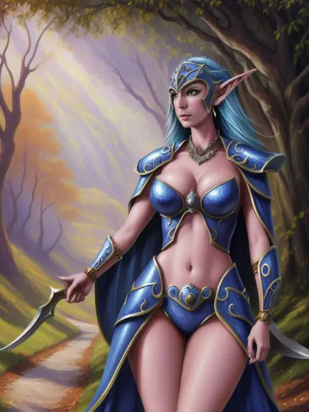 이 모델은 워크래프트 세계관의 나이샤를 그린 이미지를 생성하는 데 사용됩니다. 워크래프트 스타일의 일반적인 나이트 엘프 사냥꾼 이미지 생성에도 사용할 수 있습니다.