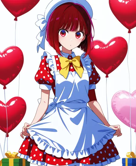 | 训练词汇 | Kana Arima, Arima Kana, red hair, red eyes, short hair, bob cut,已复制! black mini hat, pink gloves, mini top hat, ascot, black skirt, frills, crimson woman legwear, crimson red woman legwear, short sleeves, dark red color button up shirt, dark red button up shirt,已复制! hat bow, white bow, polka dot dress, puffy short sleeves, red hair, white thighhighs, puffy sleeves, frills, short hair, apron, red eyes, bob cut, red dress, bowtie, yellow bow, white headwear,已复制! |