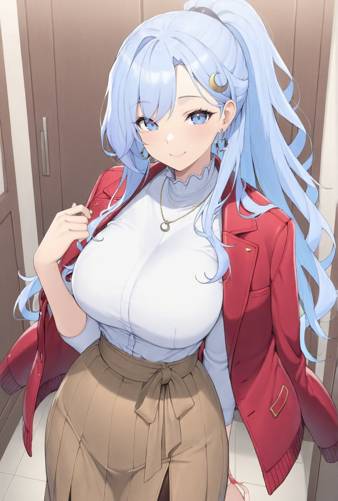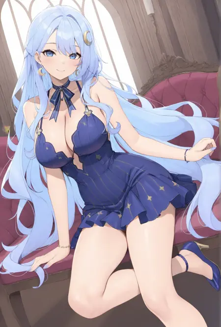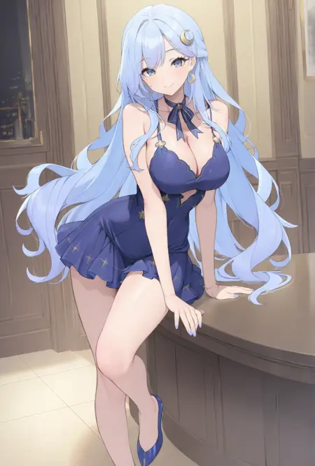 | 학습된 단어 | Grace, 1girl, solo, long hair, hair ornament, blue eyes, large breasts, bare shoulders, very long hair, blue hair, pantyhose, earrings, parted lips, high heels, black pantyhose, thigh strap, neck ribbon, bridal gauntlets, side slit, brown pantyhose, purple bow, light blue hair, long dress, thighlet, bow, ribbon, cleavage, white shirt, sidelocks, sleeveless, black skirt, parted bangs, bodystocking,복사됨! |
